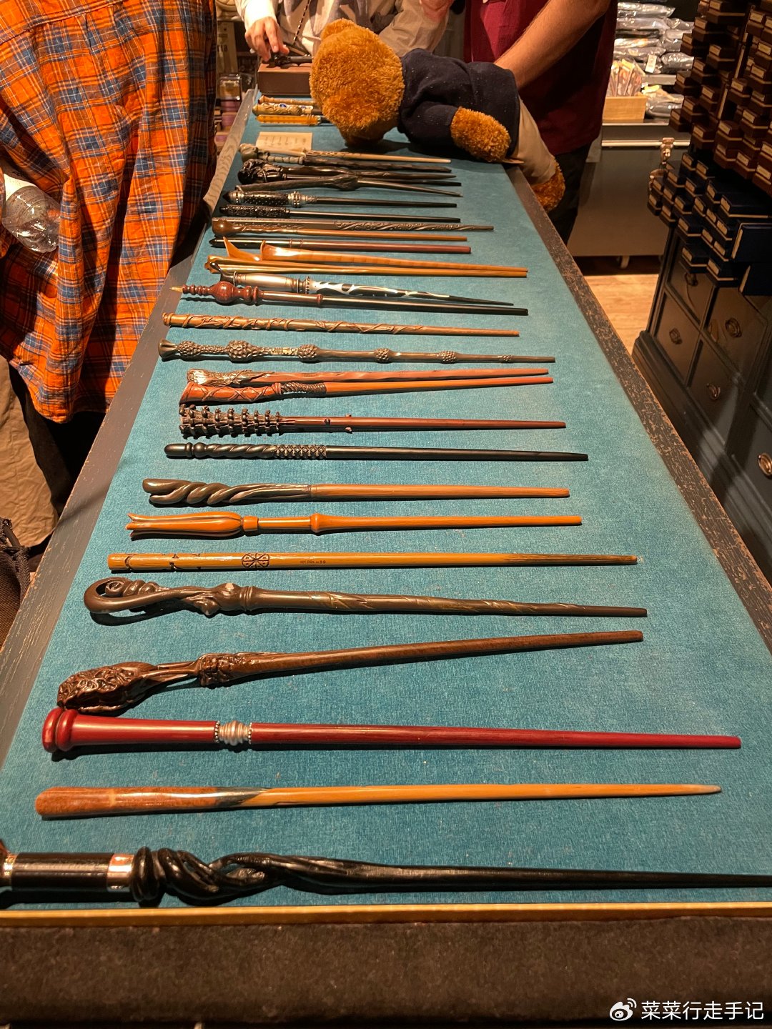 店里很多魔法周边产品,都挺带感的,但价格不菲。她站在魔法棒展示台前反复摩挲着魔法棒们,拿起又放下,来回看了又看,只舍得花大价钱给好朋友精心挑选了一支哈利波特原版魔法棒做生日礼物,抠搜搜地给自己买了一个小小的钥匙扣(也差不多折80、90元一个)。我问她要不要也来根魔法棒,她说自己已经有了(那种海外授权店的出品),这里的太贵就不买了。后来回家对比了一下,发现还是伦敦原版的更加精致,质感更佳,顿时有些后悔。好在今年年初又去了一趟伦敦,专程又去给自己配备了一支赫敏的魔法棒。