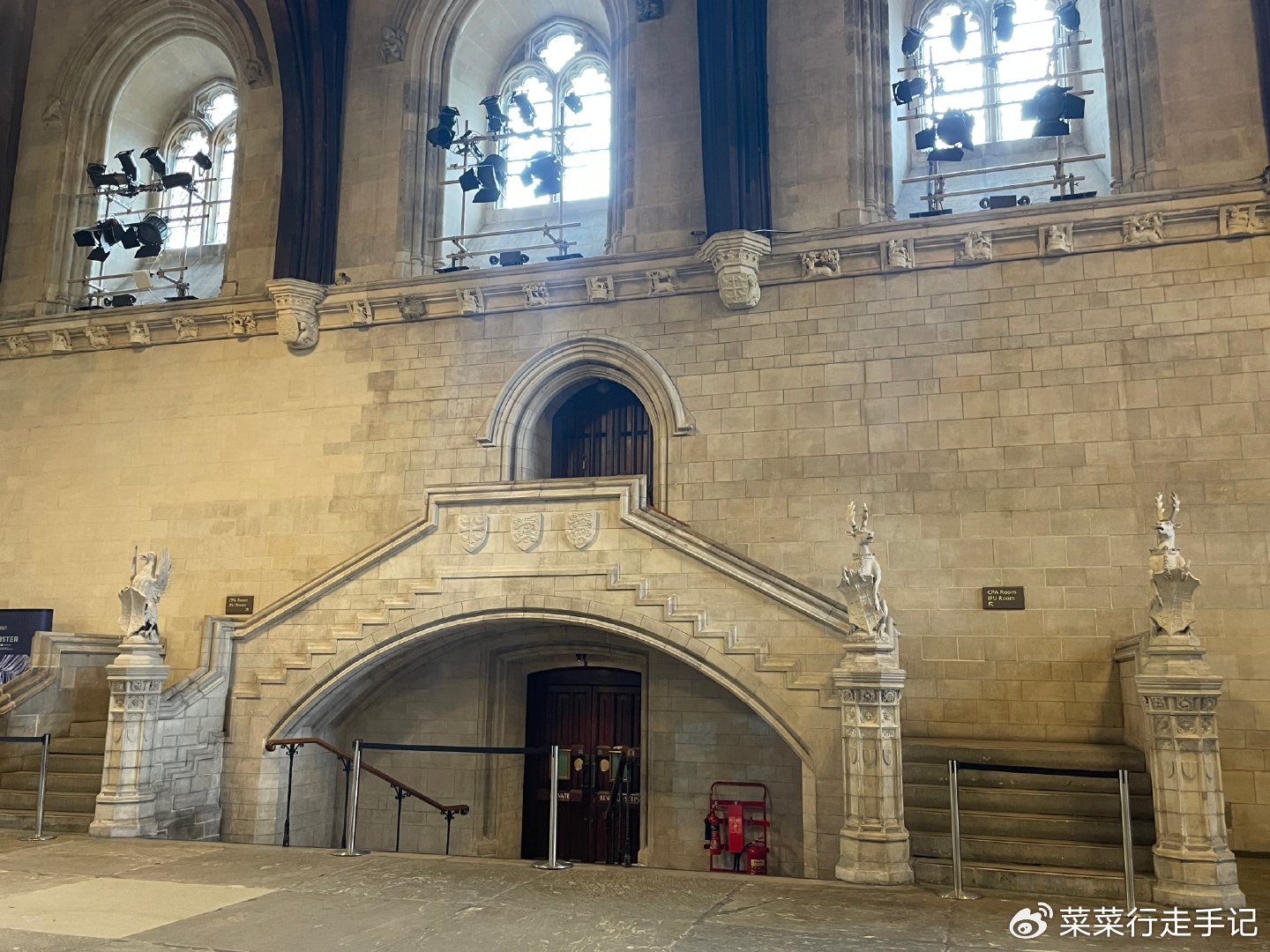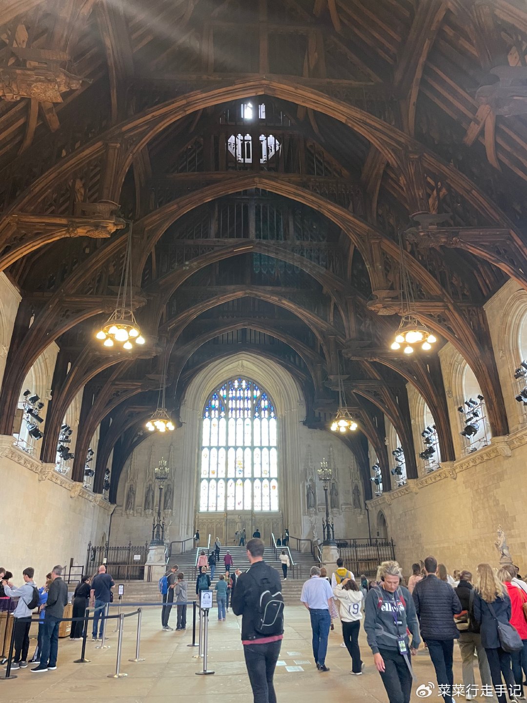 结果到了指定时间入场,发现在进入登钟楼的小门前,威斯敏斯特宫外面和大殿堂内是可以随意拍照的,懊悔不已。进入戒备森严的区域,安保人员会分派不同颜色的visitor挂绳,表明属于哪个参观团队。