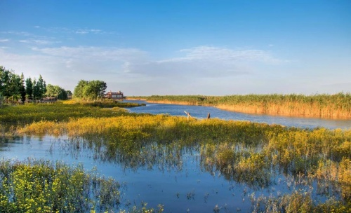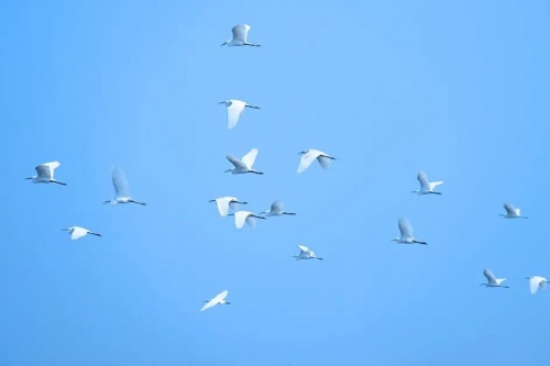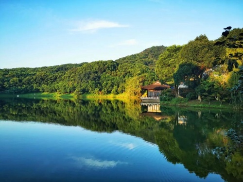 湛蓝的天空如同一块蓝色的海洋,朵朵白云闲游其间,变化着不同的姿态。晴空之下,花草清新、树木青翠、飞鸟翩翩、水韵悠悠,举目所及之处,每一帧皆可入画。
