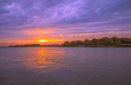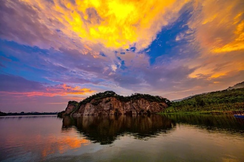 “落霞与孤鹜齐飞,秋水共长天一色”,黄昏之时,漫天的霞光将水面渲染得如梦如幻,在光影变换中愈显意境悠远。