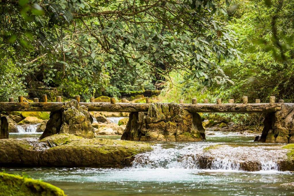 桥建得粗糙古朴,水流得肆意奔放,江南水乡看的是小桥流水的人间烟火气,小七孔的桥和水搭配起来却是野趣十足。