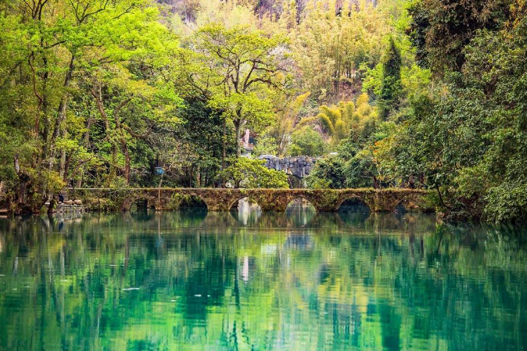 对很多人来说,贵州荔波小七孔是个可以和秘境划等号的地方。原始森林葱茏秀丽得让人失语,河水清透得不像话,风吹过的声音和虫鸟的鸣叫只是让一切显得更静谧,难怪《国家地理》将它评为“中国最美的地方”,《孤独星球》也说它是世界上最触动心灵的风景之一。