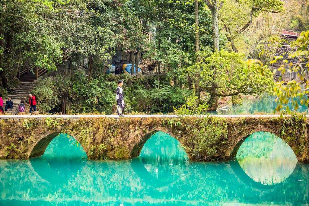 桥下的水仿佛颜料桶中凝固的色彩,不到小七孔很难想象水也可以用绚丽来形容,很难相信水也可以给人以厚重之感。