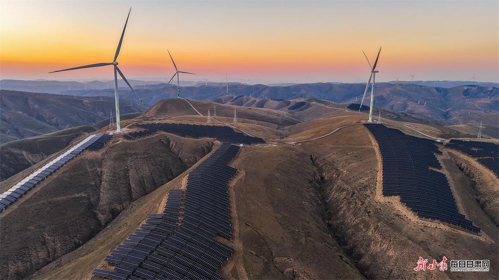 深秋时节,庆阳市环县毛井镇的风电场迎来最美时刻:成排的风力发电机组迎风转动,连片的光伏发电板熠熠生辉,二者遥相呼应,又与漫天晚霞交相辉映,勾勒出一幅“绿电+美景”的生态画卷,尽显高原深秋的独特韵味。