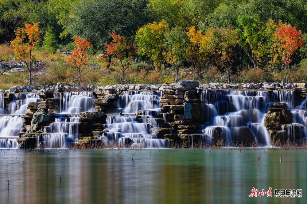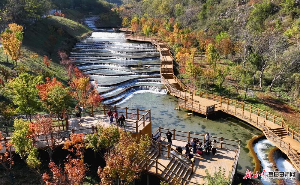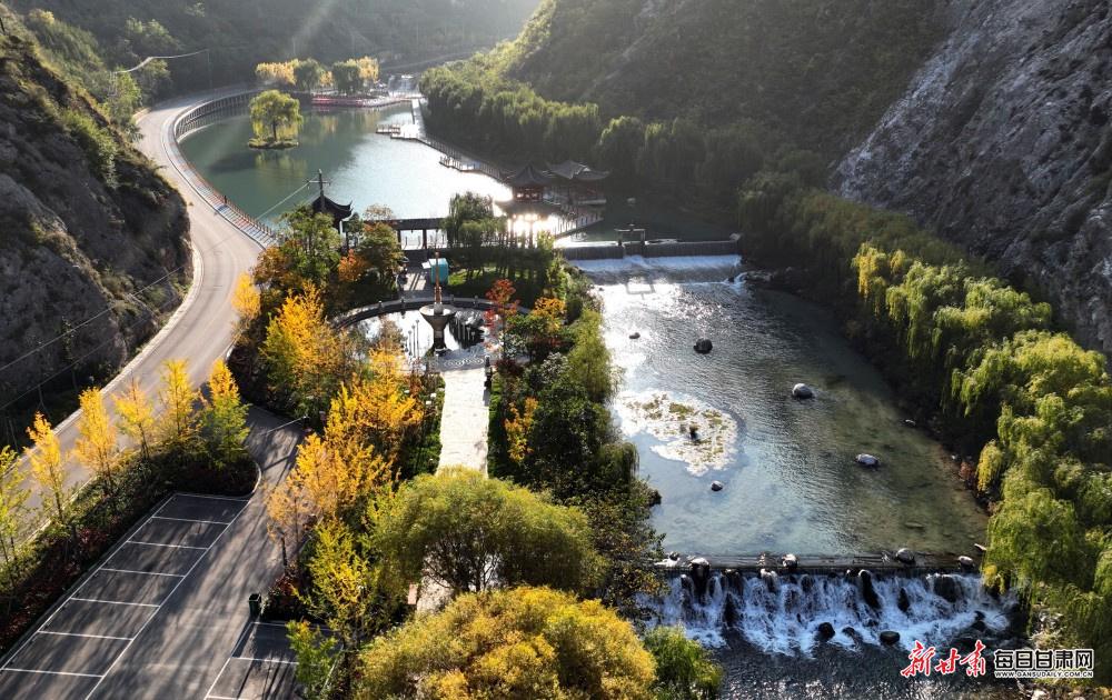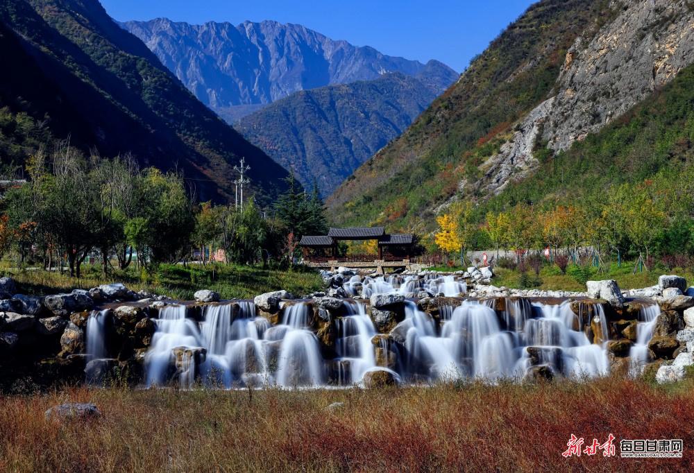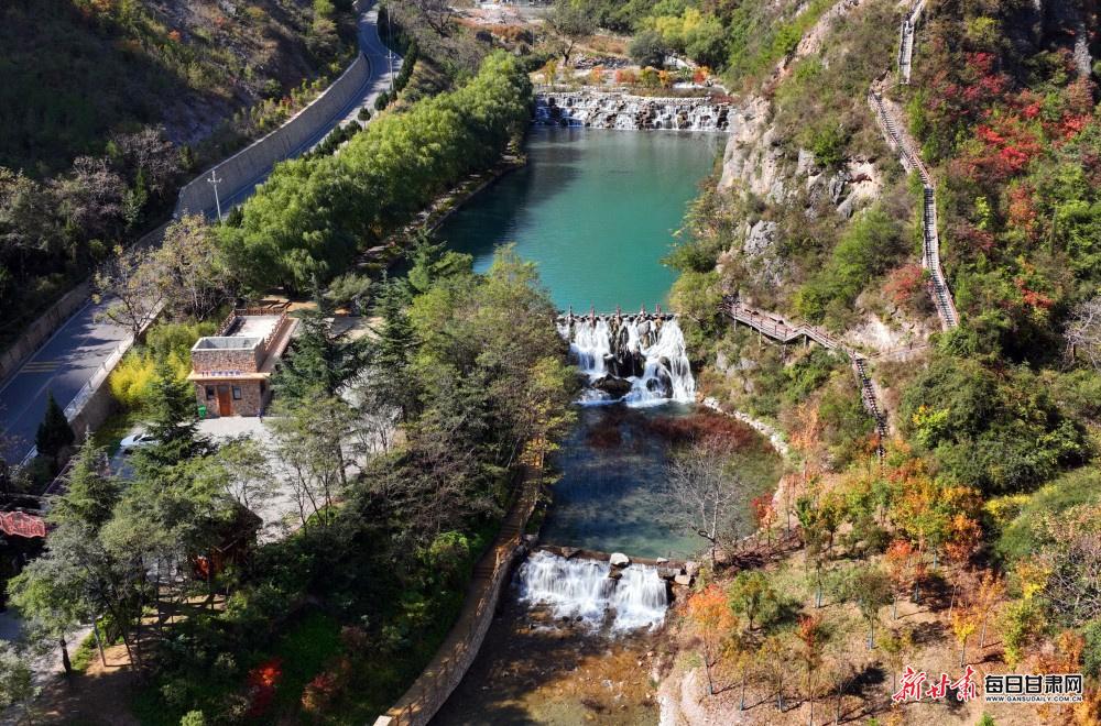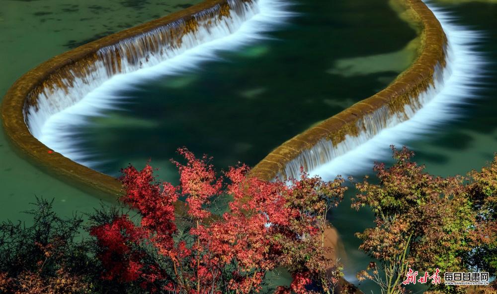 深秋的陇南武都区姚寨沟景区,正上演着一场自然与人文交织的秋日盛宴。漫山植被换上金黄、橙红的盛装,层林尽染间勾勒出立体的秋日轮廓;山间飞瀑如银练垂落,水雾氤氲中与澄澈湖泊相映,阳光洒在湖面,波光粼粼间将山水画卷晕染得愈发灵动。
