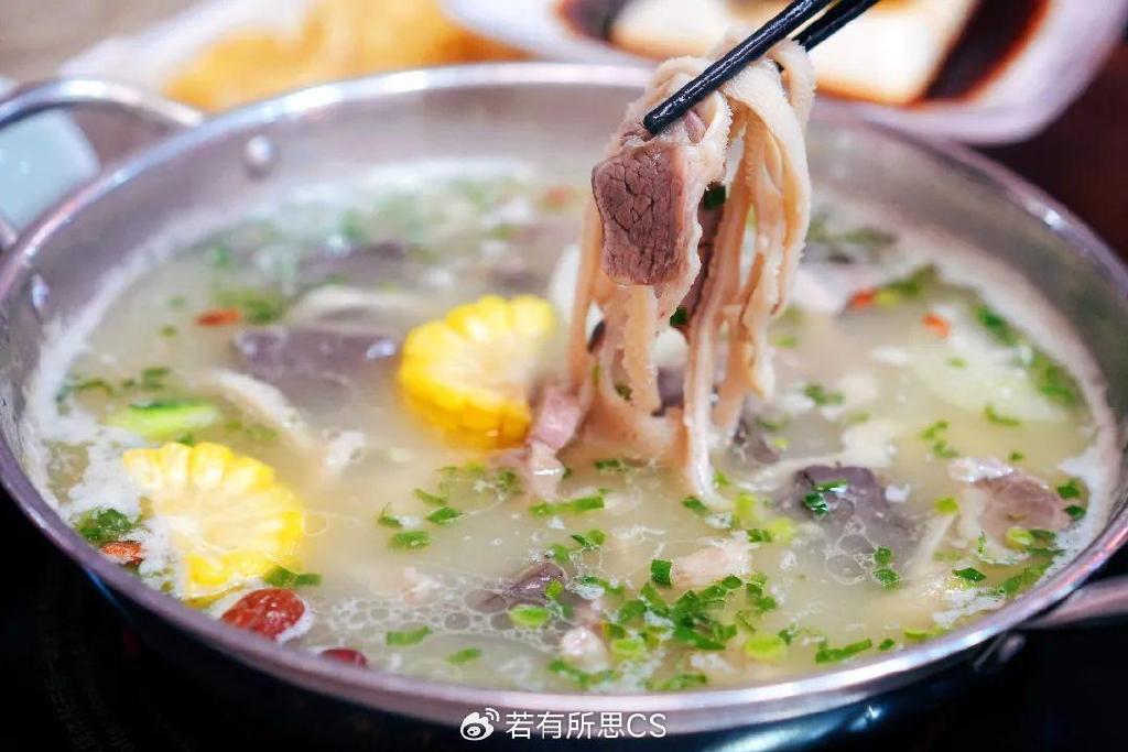 记得在涮蔬菜之前,先来上一碗羊汤,喝完全身都暖乎乎的。
