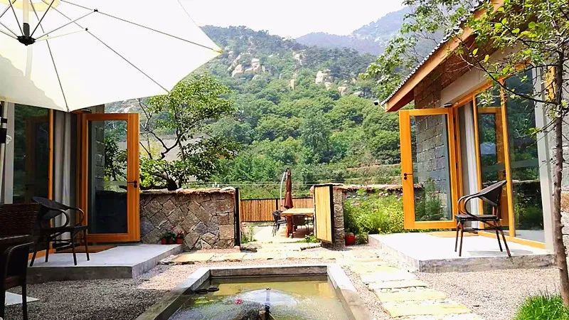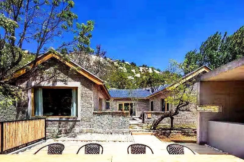沂蒙山·山舍以原有5套老石院为基础,融入沂蒙山淳朴风格,将牛棚和老房改建成了不同主题的民宿院落。精心改建14间沂蒙山特色民宿,配套休闲书吧、茶舍,既保存原古村石屋传统风貌,又完美实现与当地百姓的共建共享。