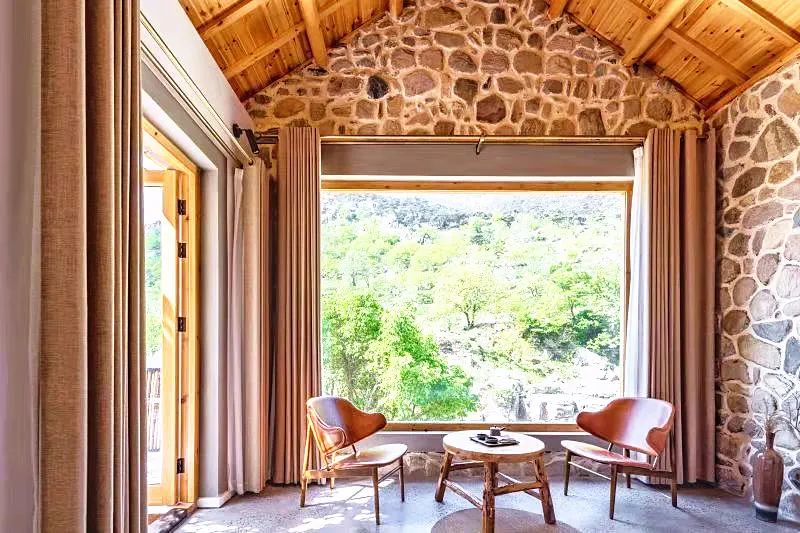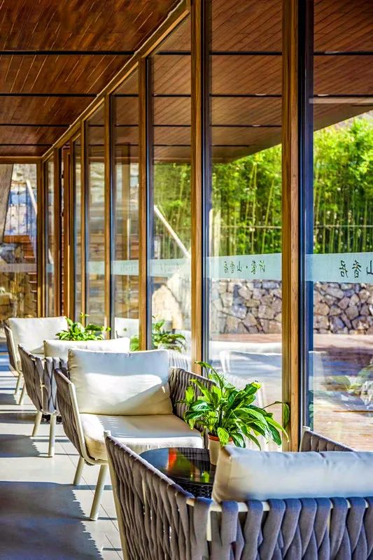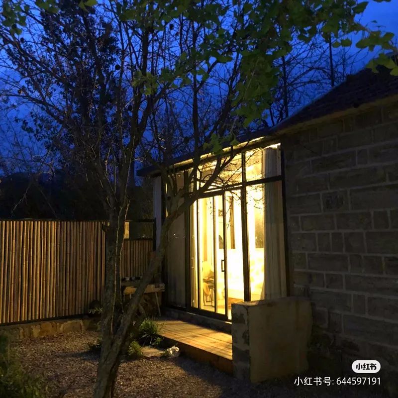 大片的玻璃窗,是现代民宿备受欢迎的元素,窗子也不是随便开的,要与大山里光线变化契合,要从每个窗子看去都是一幅山水画,要与自然亲密无间。这里的每一棵树,都保留原本的样子,这里的房子符合现代的居住概念,也仍有老房子的灵魂。